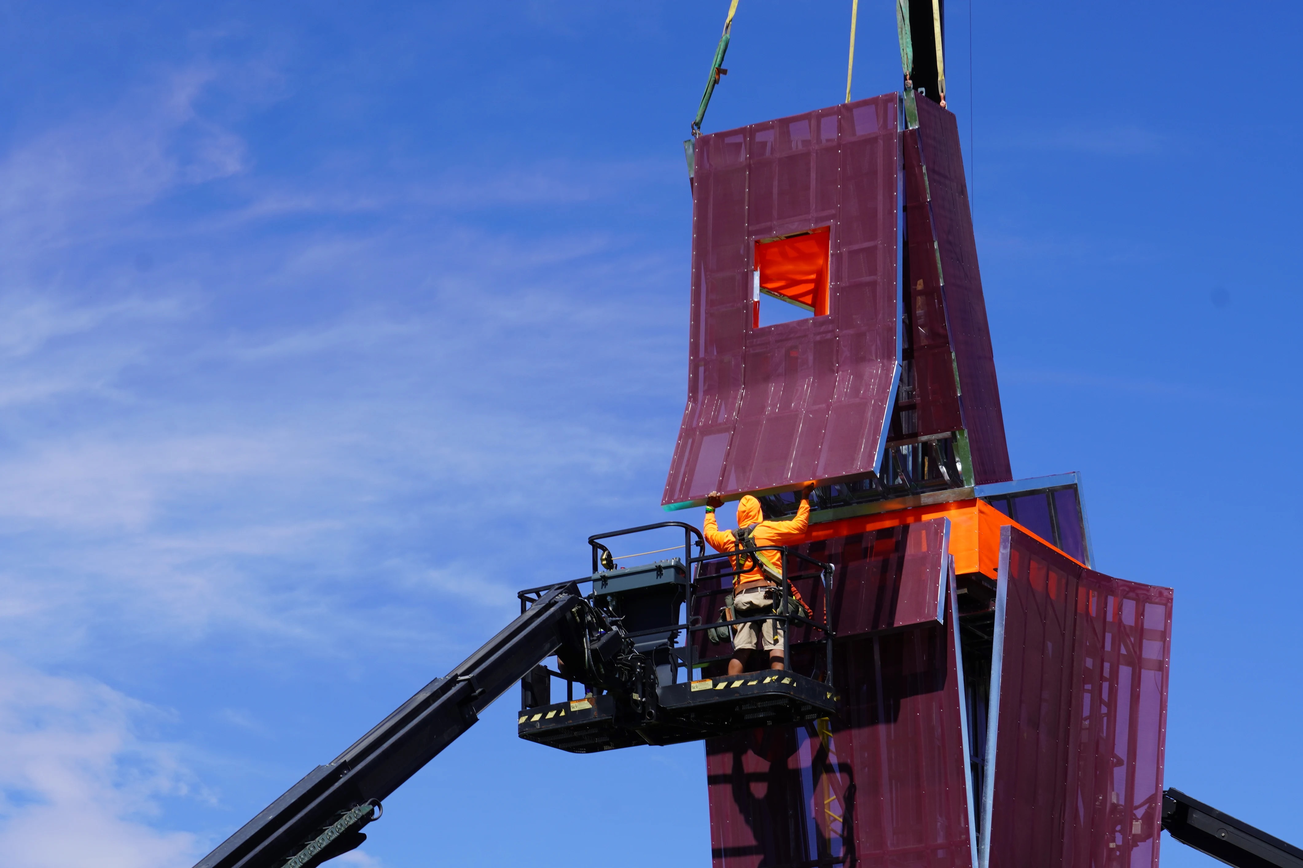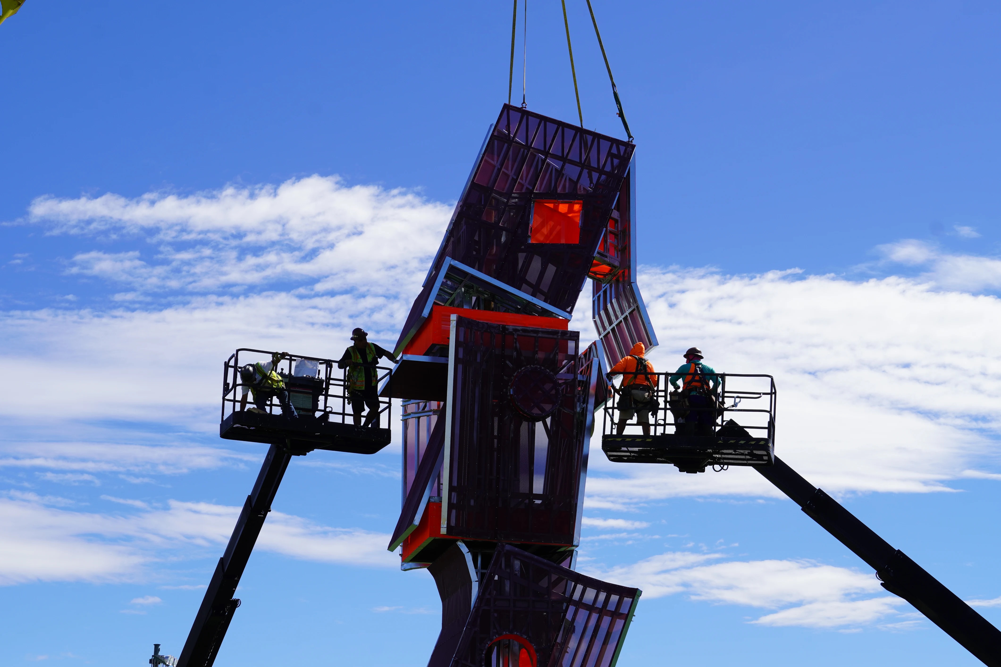 A four-story “tower” of geometric boxes designed by UCLA Arts/UCLA Architecture and Urban Design alumni is among the large-scale installations festivalgoers can enjoy viewing at this year’s Coachella Valley Music and Arts Festival.