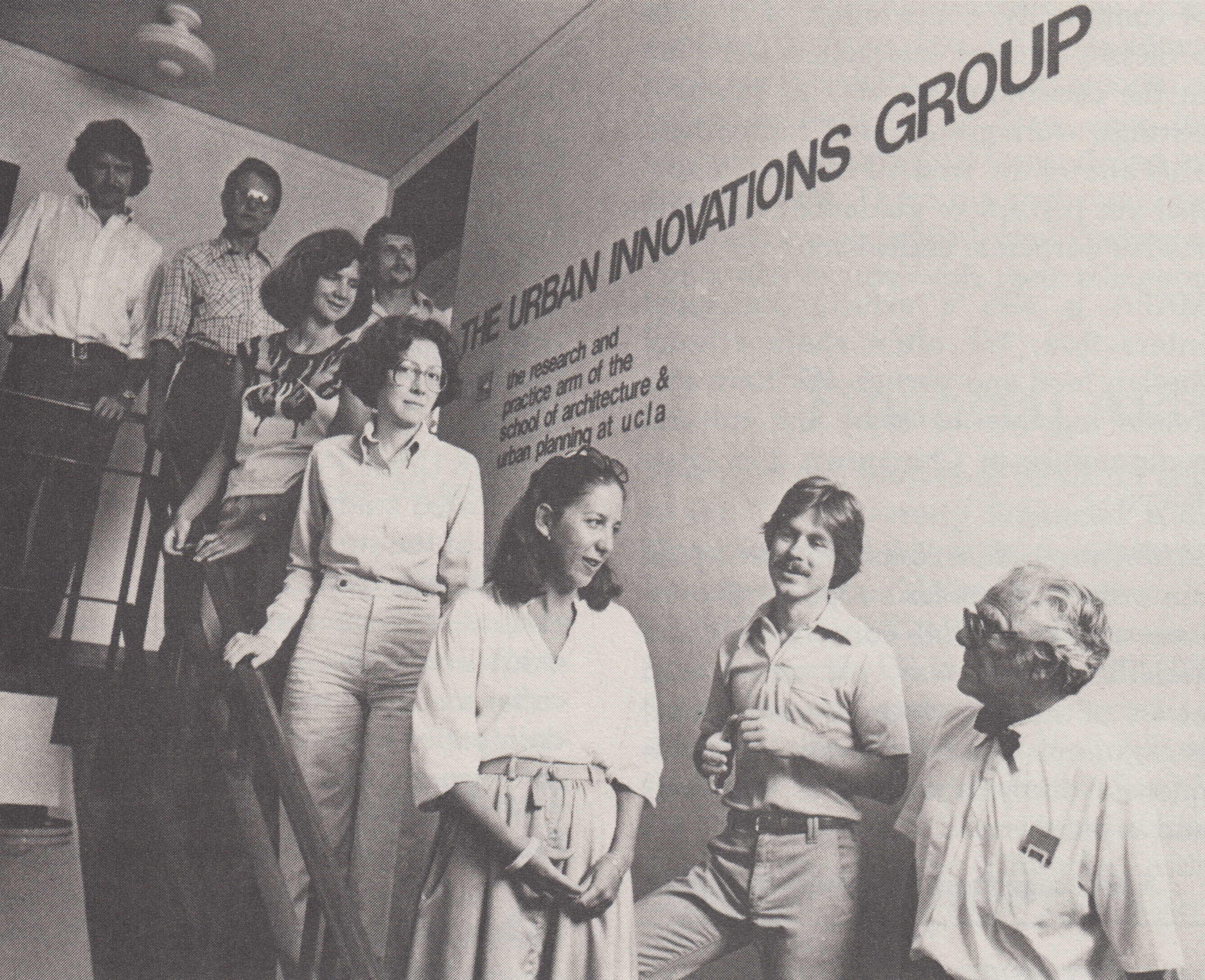 Perloff also oversaw the development of the Urban Innovations Group. Based on a belief in architectural practice as a form of pedagogy, the Urban Innovations Group was a teaching clinic wherein faculty and student interns worked together with clients on commissioned designs. It lasted for 23 years as a not-for-profit organization located in Westwood Village. Diverse projects completed by the Urban Innovations Group included the Oceanside Civic Center and a Bunker Hill masterplan.